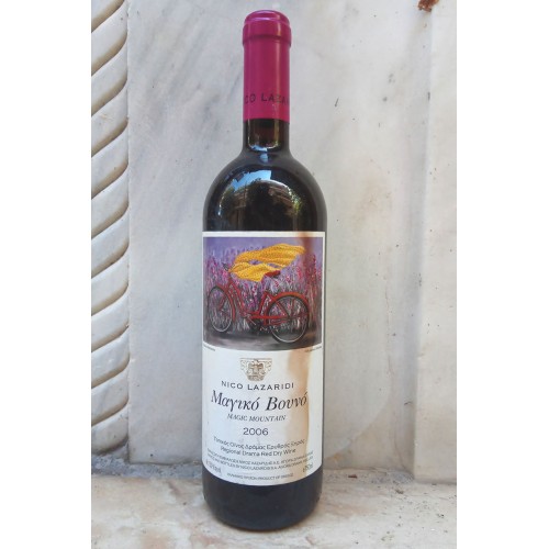 Το Μαγικό Βουνό ερυθρό , που παράγεται από τις ποικιλίες Cabernet Sauvignon & Cabernet Franc, από την πρώτη του κυκλοφορία το 1990 και ως σήμερα, παραμένει ένα αξεπέραστο προϊόν, μία γεύση θεία, ευγενική, μυστηριακή που χαρακτηρίζει την ποιότητα της NICO LAZARIDI.