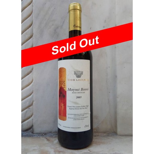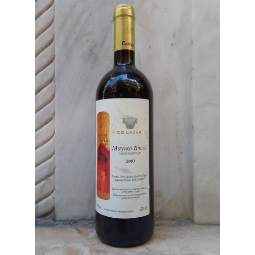 Σε φιάλη η οποία κοσμείται από έργο του Δημήτρη Γαλιατσάτου, το Μαγικό Βουνό 2003, ωρίμασε για 16 μήνες σε καινούρια δρύινα βαρέλια. Το πασίγνωστο οινοποιείο της Αγοράς, έχει την ικανότητα να παράγει για πολλά χρόνια υψηλής ποιότητας Bordeaux blend κρασιά.