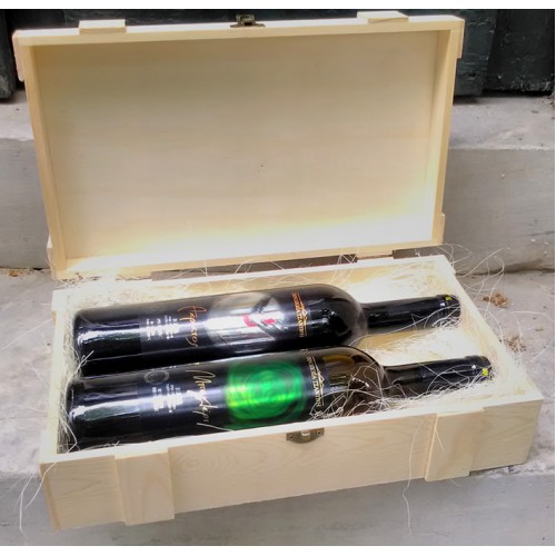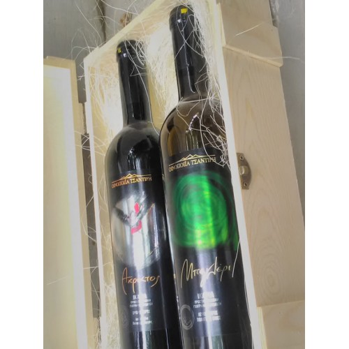 Το ξυλοκιβώτιο περιέχει 2 ετικέτες της οινοποιίας Τσαντίρη, με τις γηγενείς ποικιλίες της Ικαρίας, το Μπεγλέρι, το Φωκιανό και την Γκντούρα (Μανδηλαριά). Το δώρο αυτό περιέχει όλη την γεύση και τα αρώματα του νησιού και έχετε πολλούς λόγους να το δωρίσετε κάπου, είτε για την μακροζωϊα που φημίζεται η Ικαρία, είτε για τα ατελείωτα πανηγύρια της, είτε για το φυσικό της περιβάλλον. Ένα δώρο που σίγουρα θα εντυπωσιάσει λόγο της σπανιότητας του και θα μείνει αξέχαστο χάρη στην ποιότητά του!