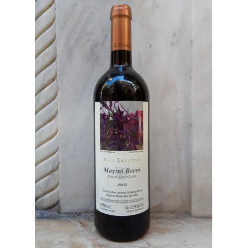Το Μαγικό Βουνό ερυθρό , που παράγεται από τις ποικιλίες Cabernet Sauvignon & Cabernet Franc, από την πρώτη του κυκλοφορία το 1990 και ως σήμερα, παραμένει ένα αξεπέραστο προϊόν, μία γεύση θεία, ευγενική, μυστηριακή που χαρακτηρίζει την ποιότητα της NICO LAZARIDI.